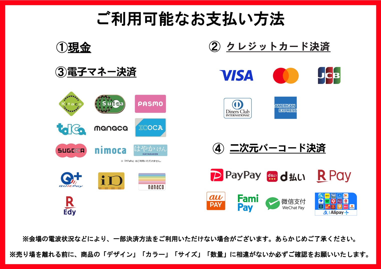 《会場販売 お支払い方法》