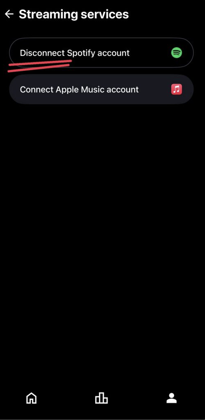 Streaming services→連携した方のアカウントが「Disconnect」で始まっていれば連携成功。