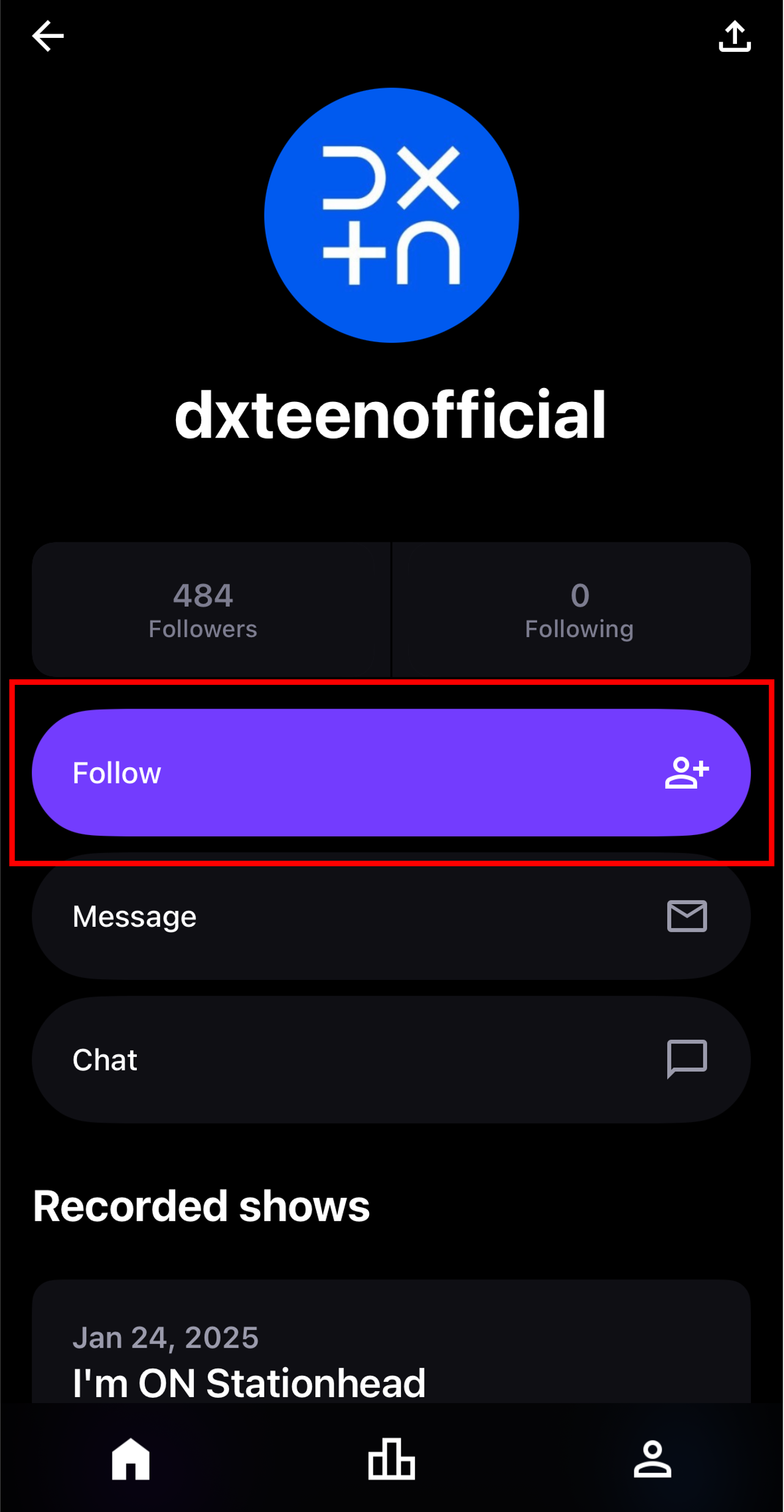 ▶︎ Stationheadトップページ右上の「🔍」から「dxteenofficial」を検索